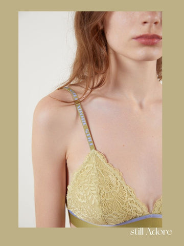 the golden yellow stretch lace gives the bralette a shining effect, and the elastic under band offers support and a soft skin feeling. Double slim adjustable shoulder straps provide sexy and soft support. Back G-hook closure with two hook.